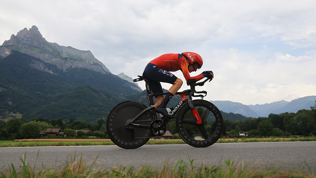 El danés fue una centella entre las carreteras alpinas y fue marcando los mejores tiempos en todos los puntos intermedios. Logró 16 segundos de renta con Pogacar en los 7 primeros kilómetros, llegó con 31 de margen al pie del puerto de Domancy y en la subida elevó la renta a 1.05 minutos.
