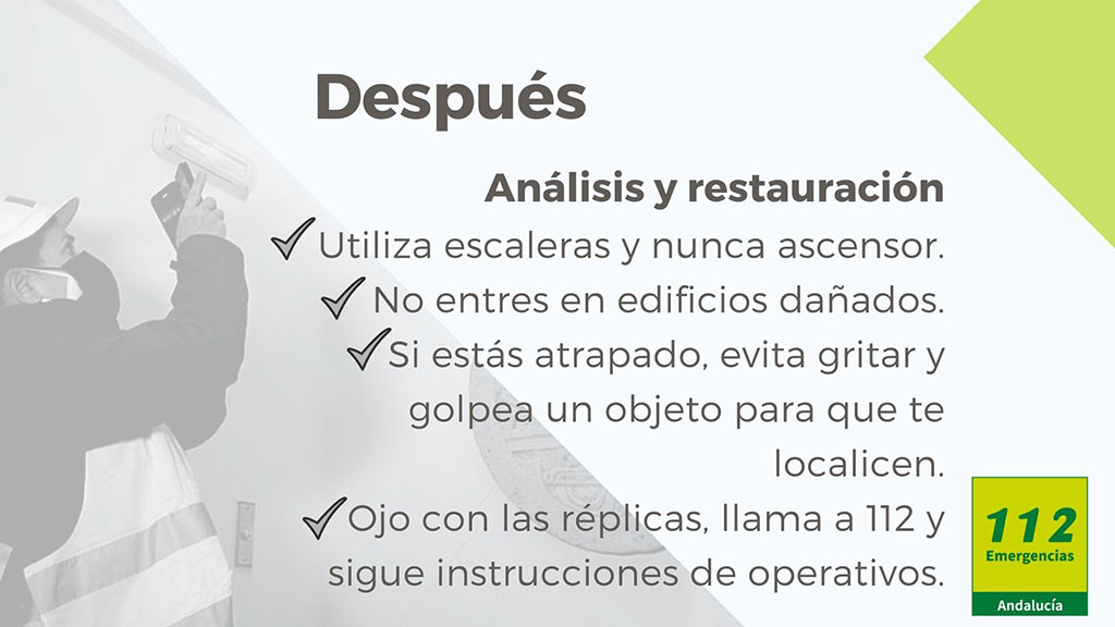 En caso de terremoto o sacudida sísmica, el servicio de Emergencias 112 aconseja que se mantenga la calma ante la posibilidad de réplicas: "Quédate siempre dentro del edificio en el que estés. Entrar o salir eleva el riesgo". Pincha en el vídeo para saber cómo actuar.