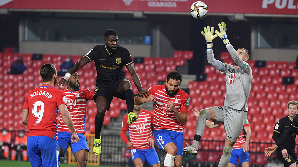 Los de Ronald Koeman cumplieron con su condición de favorito en el torneo del K.O, pero tuvieron que sufrir y mucho, en especial por culpa del meta rival Aarón, de los postes y de un Granada que castigó dos errores de Umtiti. Con 2-0, el Barça fue incapaz de ver puerta hasta los últimos instantes, por medio de Griezmann y Alba.