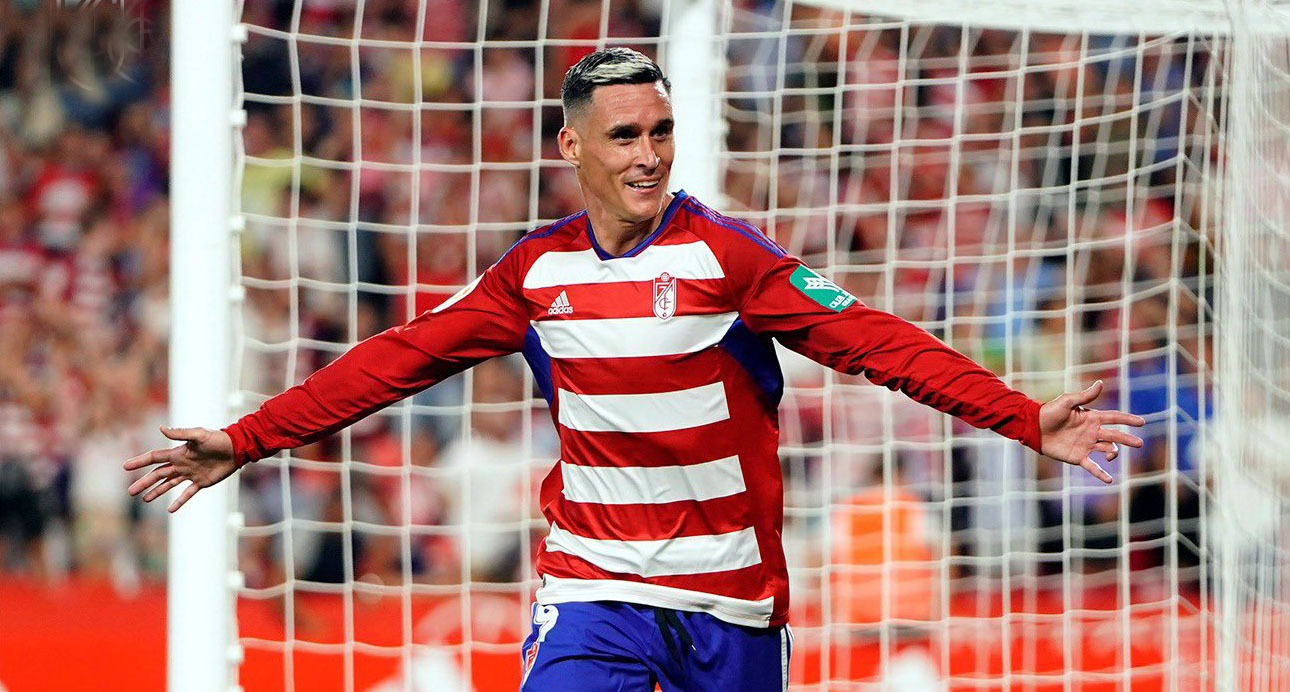 El delantero abrió un marcador que solo pudo cerrar el equipo nazarí en el último minuto con el tanto de la tranquilidad para mantenerse líder y con la puerta a cero en este inicio liguero.