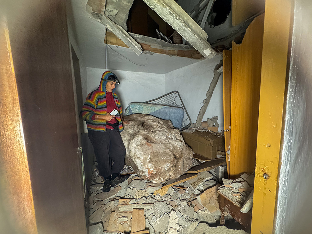 Una roca del tamaño de un coche ha caído dentro de una vivienda. No había nadie dentro, pero los cascotes impactaron también dentro de la casa de un vecino y acabaron con la vida de dos perros