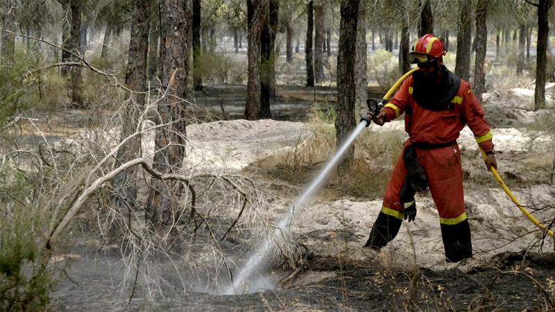 Martínez Bravo reseña que desde el principio, lo más importante fue "el factor seguridad humana", ya que el incendio comenzó a aproximarse a Mazagón, primero y posteriormente a la zona más oriental -Matalascañas-; "lo primordial era proteger a las personas llegando incluso a tener que dejar a un lado el propio fuego".