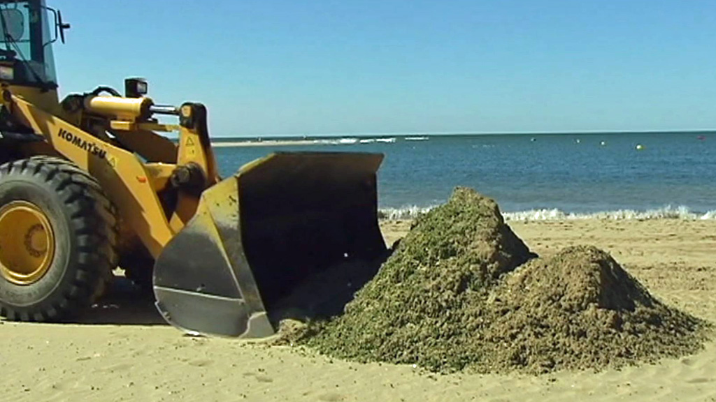 El operativo de emergencia para su retirada ha finalizado ya, con éxito. Ahora la maquinaria municipal con ayuda de dos remolques es la encargada de limpiar cada mañana las algas que vaya arrastrando el mar.