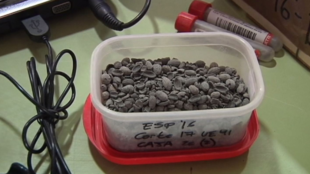 La experta en arqueobotánica, Laura López, llegada de Argentina es la encargada de descubrir qué nos cuentan todos estos huesos de aceituna.