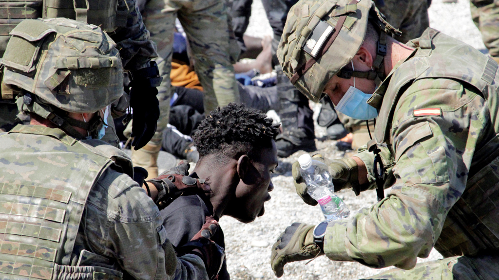 Nos lo cuenta Isabel Brasero, portavoz de Cruz Roja Ceuta. Las escenas impactantes llegadas desde Ceuta en estas 48 horas han sido muchas. Como las de un menor que, al pisar tierra firme y ya en la playa El Tarajal se ha abrazado llorando a una militar al sentir que ya estaba a salvo.