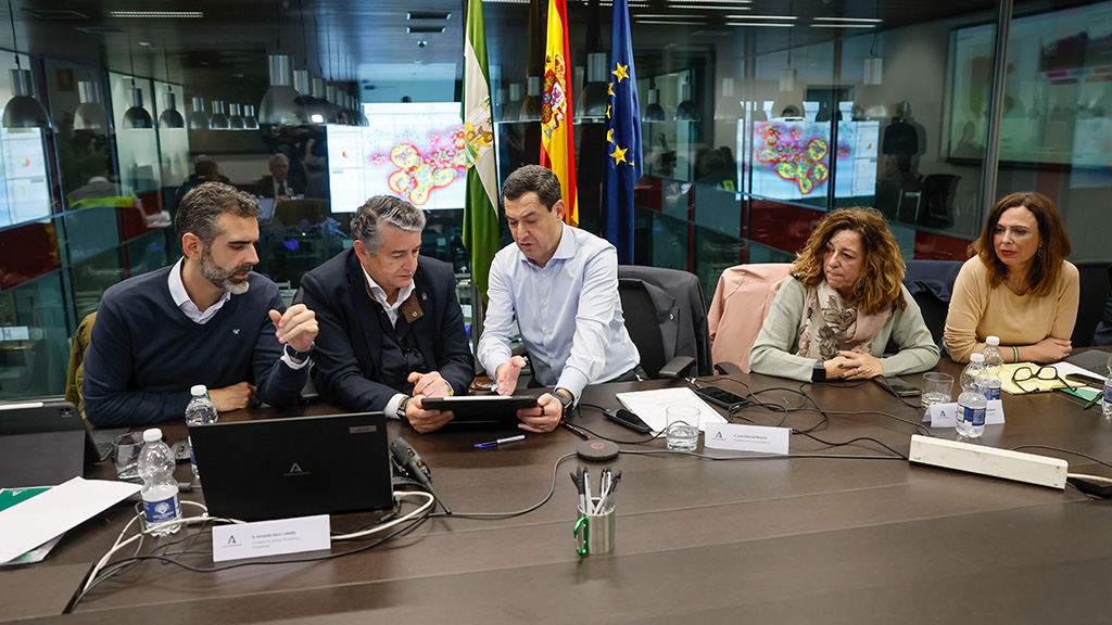 Juanma Moreno ha presidido este lunes la reunión de coordinación sobre los efectos de la DANA, que ha generado 1.841 incidencias, prácticamente en todas las provincias.