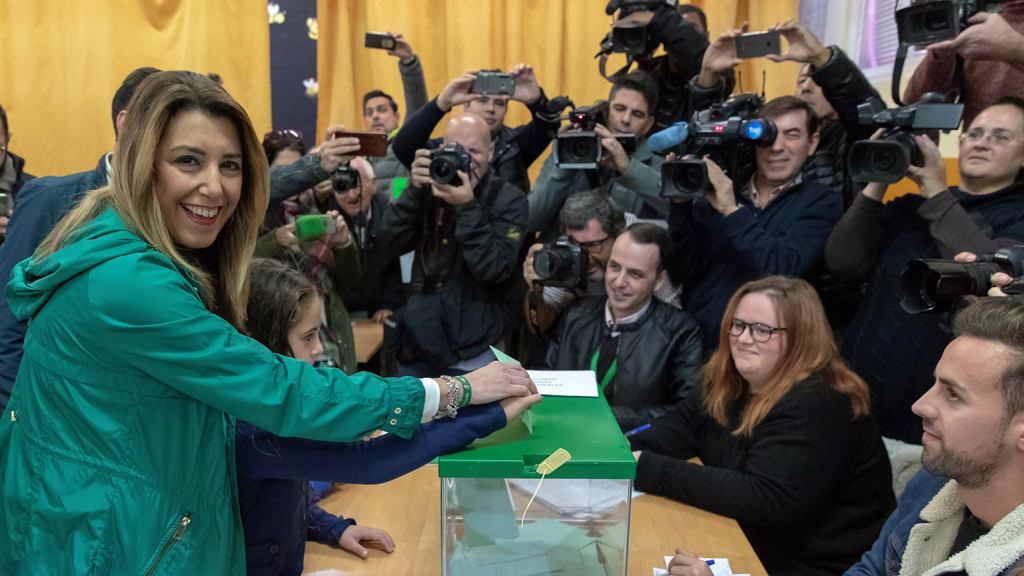 La Junta Electoral de Zona (JEZ) de Sevilla ha acordado remitir al Juzgado de Guardia de incidencias la denuncia que el PSOE-A ha presentado por los insultos que dos apoderados de VOX han dirigido a la candidata socialista a la reelección como presidenta de la Junta, Susana Díaz, cuando ha ido a votar este domingo al colegio Alfares de Triana.