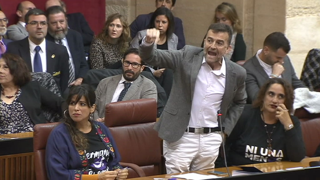 La posibilidad de jurar o prometer desde el escaño, en lugar de subir al estrado, ha hecho estallar la tensión en el Parlamento. El diputado de Adelante Andalucía, Antonio Maíllo, ha reprochado a la nueva Presidenta, Marta Bosquet, la elección de esta fórmula inusual. Vídeo del momento de tensión.
