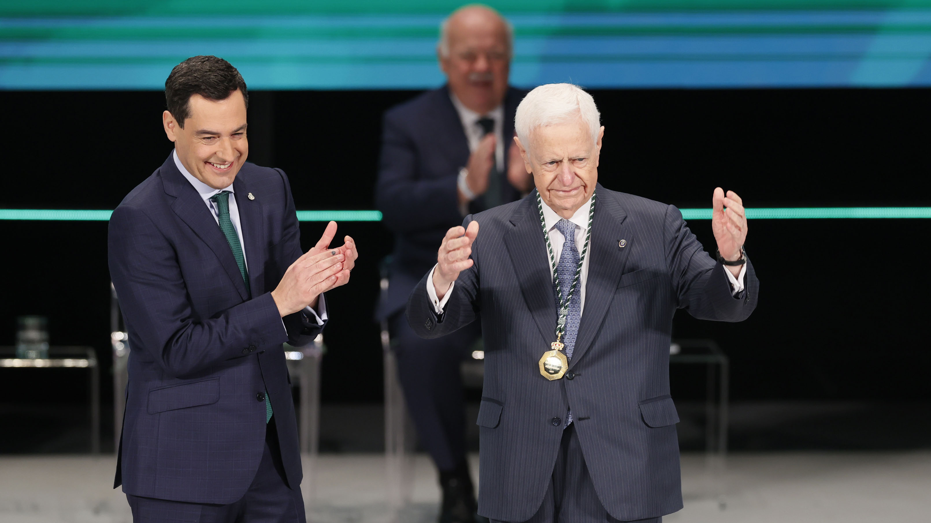 El director de la Real Academia Española, Santiago Muñoz Machado, y el cantaor flamenco José Mercé, han recogido este miércoles en el Teatro de la Maestranza los títulos de Hijo Predilecto de Andalucía, la máxima distinción institucional que se concede cada 28 de febrero. El jurista y escritor cordobés Santiago Muñoz ha pronunciado un discurso en nombre de todos los galardonados este año en el que ha aprovechado para reivindicar “las hablas andaluzas” y para destacar la importancia que supone para un andaluz recibir una distinción como la Medalla de Andalucía o el Título de Hijo Predilecto que él mismo ha recogido. “Nada mejor nos va a ocurrir en el resto de nuestras vidas que este abrazo de la patria andaluza”.