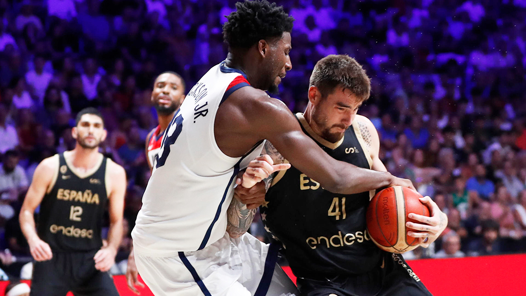 Pese a que lo serio está por llegar, de amistoso tuvo poco el broche al Torneo Centenario de la FEB. El duelo entre las dos mejores selecciones del mundo, según el ranking FIBA, tuvo un primer dominio americano. Los Hernangómez ayudaron a la reacción de una España que creció en defensa y también en ataque con la entrada de Aldama, cuidando bien el balón para no regalar puntos (28-26).