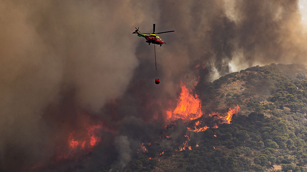 Unos 400 efectivos luchan contra las llamas por tierra y aire. Los hidroaviones no cesan de cargar en las playas de las localidades vecinas a Mijas o Alhaurín el Grande