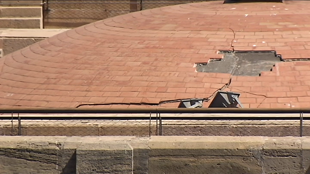 La remodelación cosistió en la construcción de bóvedas por todo el techado. A día de hoy las grietas son muy evidentes . La acumulación de agua de lluvia, la falta de juntas de dilatación y el viento, que se ha llevado algunos baldosines, han empeorado la situación