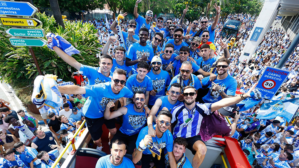 Málaga ha vibrado con su equipo en la calle. Miles de aficionados han celebrado el ascenso de su equipo, que hizo el recorrido en un autobús descapotable. Momentos de emoción que se han repetido en su Ofrenda al Cautivo, su paso por la Plaza de la Marina y en su llegada al Ayuntamiento malagueño. Málaga ha sido más que que nunca blanquiazul. Los jugadores lucían una camiseta especial con una bufanda con el lema 'Lo hicimos'.