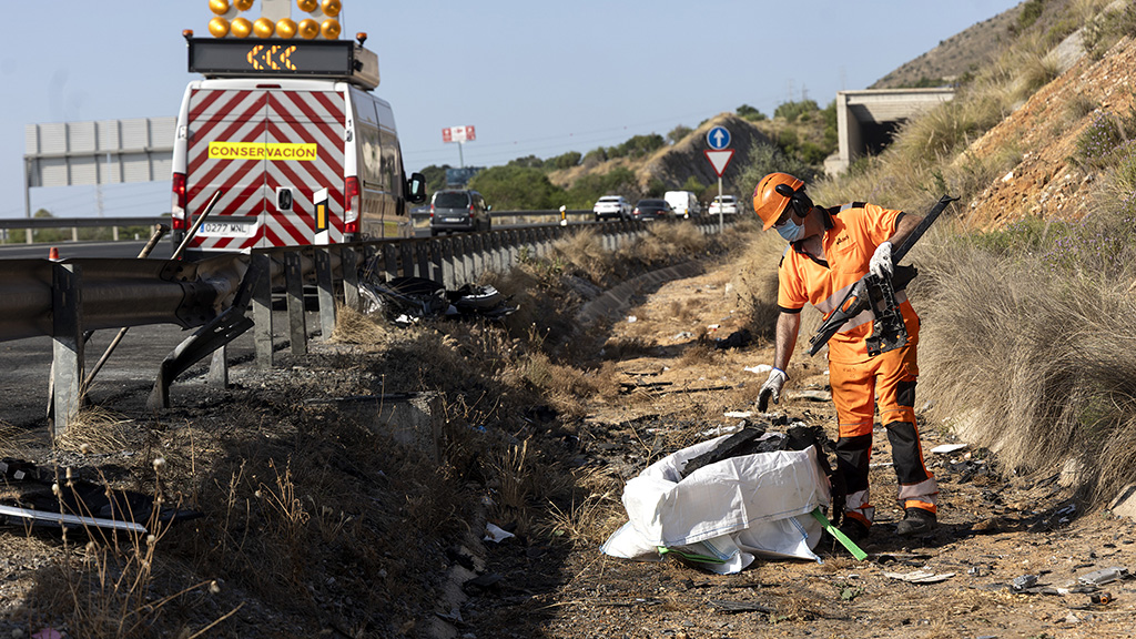 La colisión se ha producido sobre las 5:30 horas de este jueves a la altura del Palacio de Ferias de Torremolinos en la A7 en sentido Marbella, El coche de los fugitivos huía a 200 km por hora de la policía tras cometer un robo en una farmacia del Puerto de la Torre.