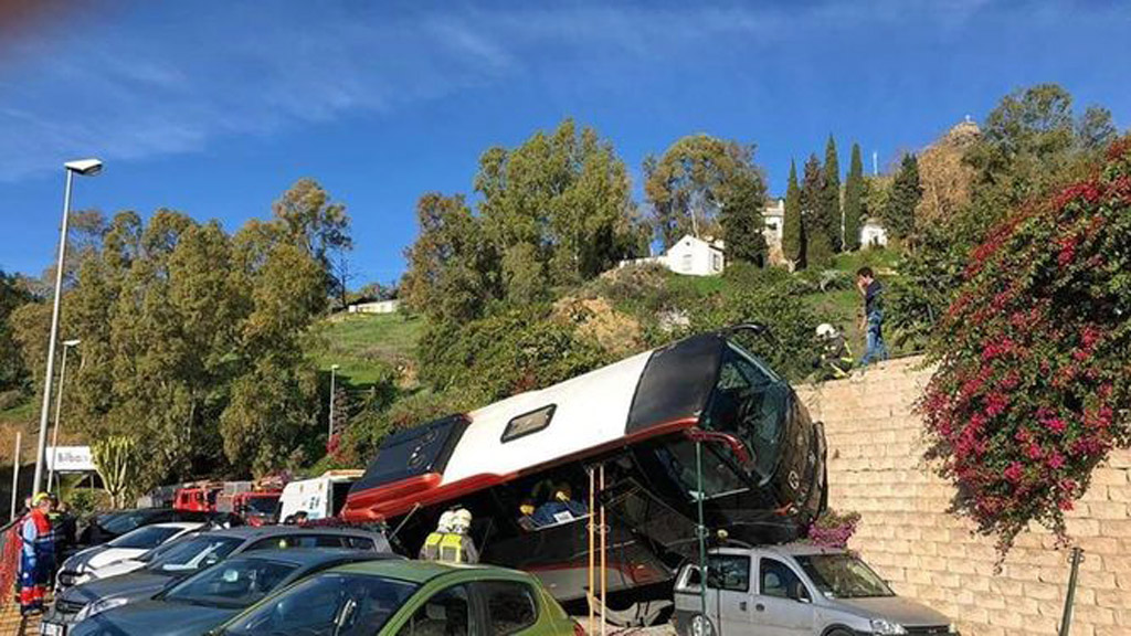 Los servicios de emergencias han tenido que rescatar del interior del autobús a un total de dieciocho pasajeros después de que el autobús cayera por un balate cercano a una rotonda y quedara volcado lateralmente.