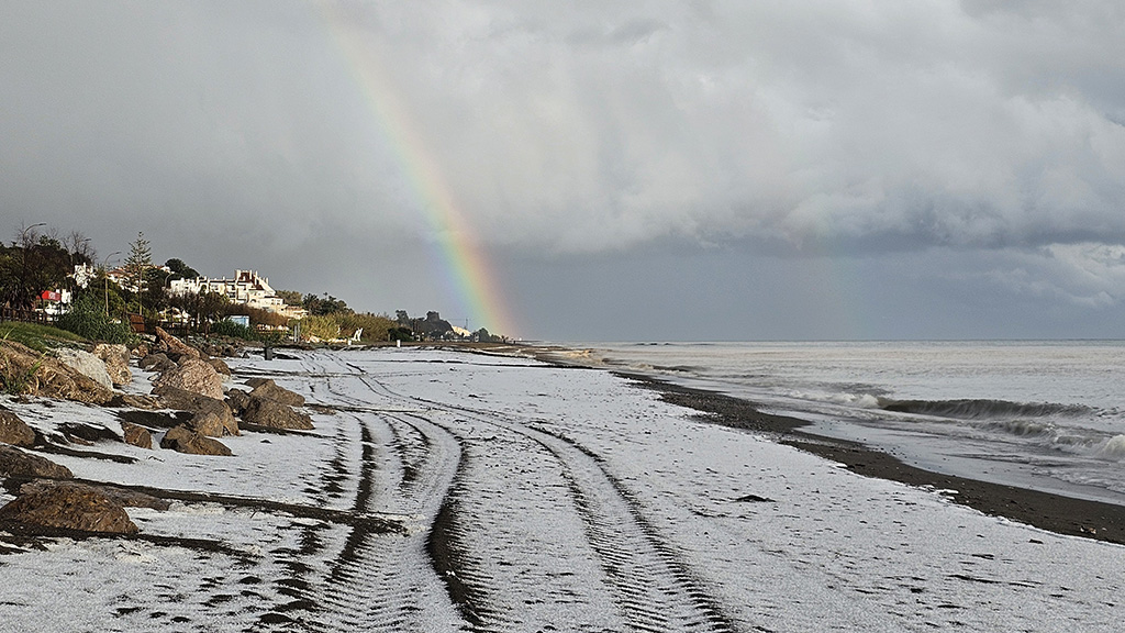 Las redes sociales se han llenado de escenas propias de una postal navideña en localidades costeras como Rincón de la Victoria o Vélez-Málaga, además de otras de interior como El Borge y Almáchar, donde de momento no constan daños de relevancia.