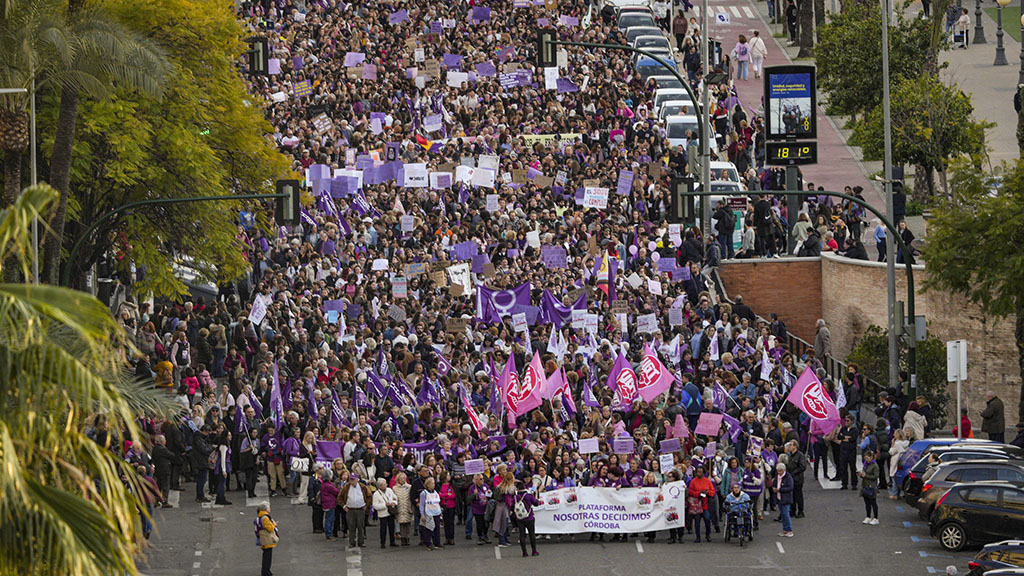 Unido también salió a la calle el feminismo en Córdoba, con una única manifestación que discurrió por el centro de la capital, con lemas en defensa de la igualdad real entre hombres y mujeres.