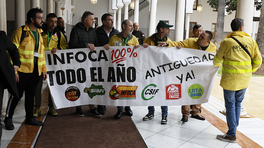 La sesión de control en el Parlamento de Andalucía se veía este jueves alterada por la protestas de un grupo de bomberos del Infoca que accedían al interior del edificio situándose, con pancartas, a las puertas del salón de Plenos. Estos trabajadores ya habian protagonizado una manifestación por las calles de Sevilla reivindicando mejoras laborales. El presidente de la Cámara, Jesús Aguirre, pidió que se les desalojaran del patio al prohibir el reglamento del Parlamento este tipo de protestas en su interior. Aguirre ha recriminado a diputados del PSOE-A, Adelante Andalucía y Por Andalucía que apoyaran la concentración de estos trabajadores.
