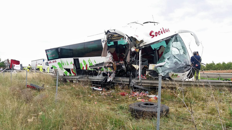 Según ha explicado el sargento de la Guardia Civil encargado del accidente, el camión se encontraba parado en el arcén por una avería y, por causas que aún se desconocen, el autobús ha colisionado de manera lateral contra él.