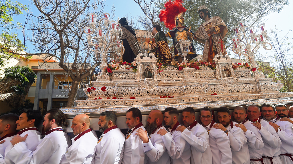 Óscar no restringe su conocimiento al área de Jerez de donde es, sino que reconoce el legado peculiar que esconden muchos rincones de Andalucía. Pero este sábado tocaba traslado al paso y engalanar a la Soledad.