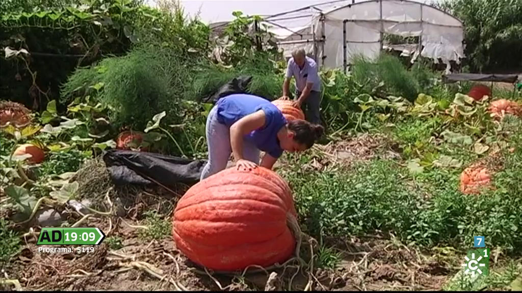 Suelen ser habituales sobre todo en verano, pero nunca dejan de sorprender. Los concursos de productos del campo gigantes llaman mucho la atención, como el que va a tener lugar este fin de semana en la localidad sevillana de Los Palacios y Villafranca. Allí, uno de los aspirantes a alcanzar alguno de los premios, muestra en "Andalucía Directo" una calabaza con más de 100 kilos, una sandía con más de 40 y racimos de uvas que superan los cinco kilos. En el caso de la calabaza el cultivo ha sido de unos tres meses antes de su recolección. La clave para conseguir estos productos agigantados son las semillas, el abono, el riego y el cuidado permanente. El concurso de Los Palacios tiene un siglo de historia. Los premios son de 150 euros al ganador, 100 al segundo y 50 al tercero de los clasificados.