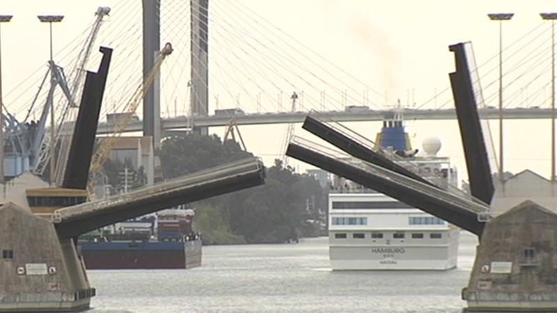 Concretamente es el tramo de acceso a la ciudad. La Autoridad Portuaria lleva a cabo obras de adecuación y modernización de este puente basculante, iniciadas hace meses y que han supuesto ya cortes parciales de circulación.