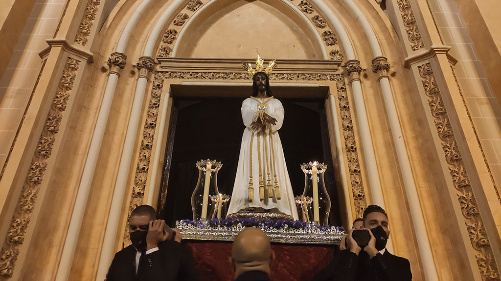 Han sido en total 13 los traslados que se han producido una vez que el obispo, Jesús Catalá, firmara el pasado miércoles un decreto que permite los actos de culto externo siempre y cuando se comuniquen previamente. Por primera vez desde que comenzara la pandemia imágenes tan icónicas como "El Cautivo" han recorrido otra vez las calles de Málaga.