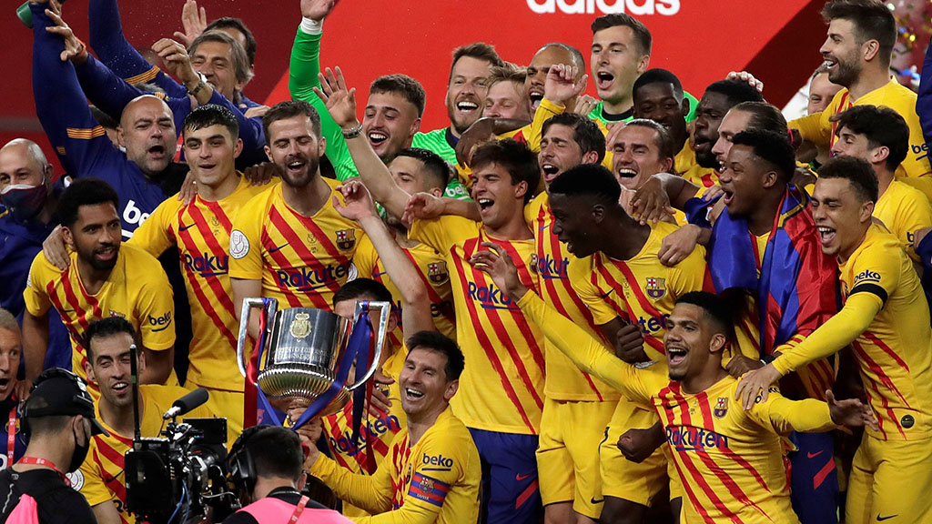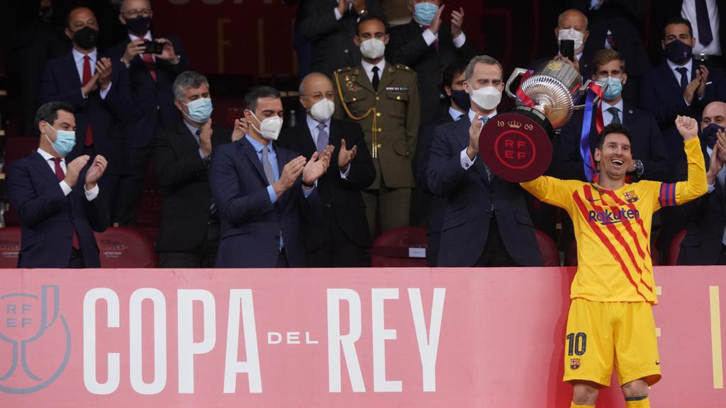 El conjunto de Ronald Koeman, que conquista el primer título de su etapa como técnico culé, ya dejó clara su neta superioridad desde la primera mitad, aunque no tuvo acierto en las ocasiones de gol que generó, todo lo contrario que en la segunda, en la que trasladó al marcador su supremacía y buen juego con un gol de Antoine Griezmann, otro del neerlandés Frenkie de Jong y un doblete de Leo Messi en doce minutos, desde el 60 hasta el 72.