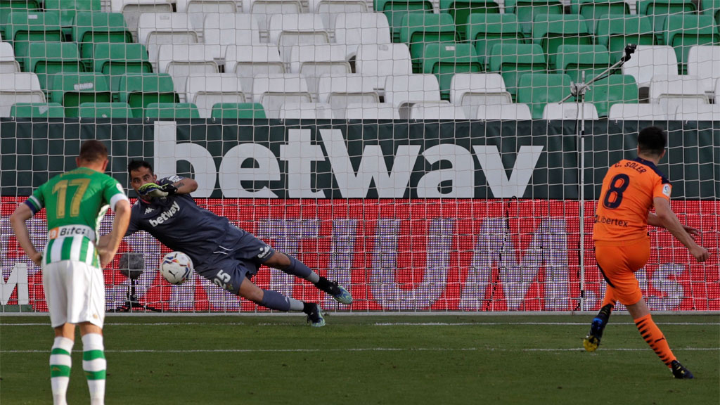 El Betis no pasó del empate (2-2), el tercero consecutivo en las últimas jornadas, y pierde una buena oportunidad de poner algo de ventaja en su carrera por los puestos europeos, pero el Valencia se lo puso difícil, le igualó en dos ocasiones en el marcador y sumó un punto meritorio pero que tampoco le sirve para alejarse definitivamente de la zona peligrosa.