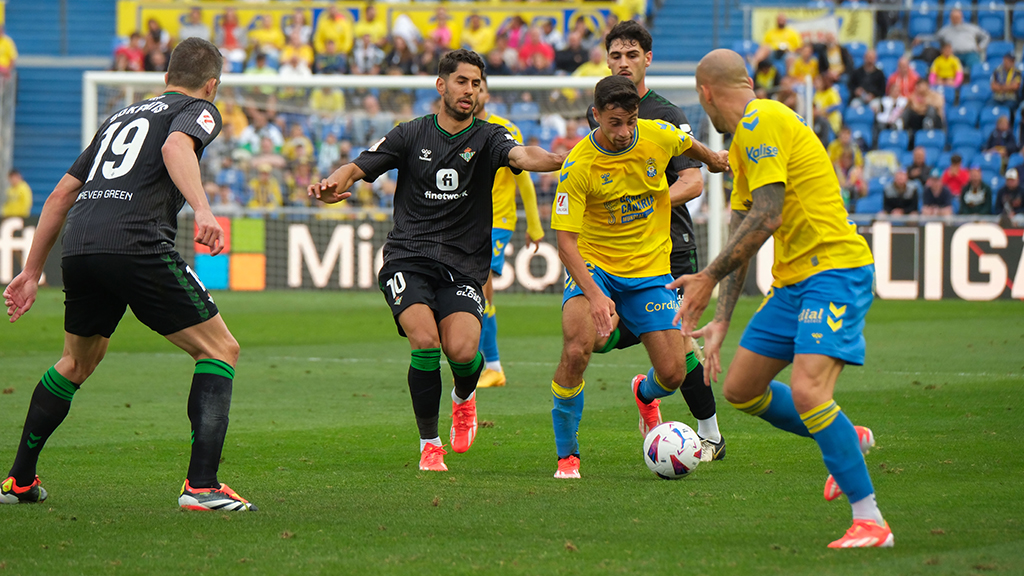 Las Palmas y Betis igualaron en el Estadio de Gran Canaria (2-2) en un precioso partido, de ida y vuelta especialmente en la segunda parte, y que deriva en un premio insuficiente para ambos equipos en sus respectivos objetivos de asegurar la permanencia y una plaza en Europa. Mika Mármol, en propia puerta, y Álex Suárez firmaron los tantos del primer tiempo, y tras el descanso anotaron dos futbolistas tinerfeños, Ayoze Pérez para el Betis y Alberto Moleiro para Las Palmas.