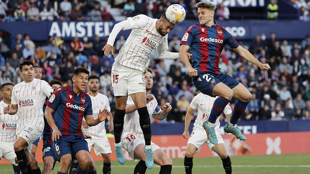 Incrementó la intensidad el Levante tras el paso por los vestuarios. El Sevilla ya no jugaba tan cómodo y la presión alta de los locales ponía en apuros a la zaga andaluza, casi inédita en el primer tiempo.