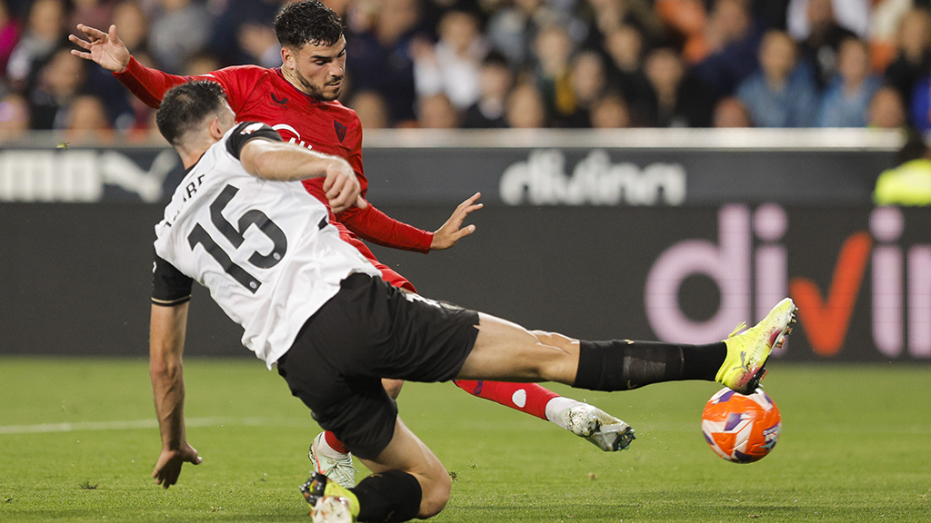 En el Estadio de Mestalla, los visitantes pidieron penalti al cuarto de hora, pero finalmente el árbitro José María Sánchez Martínez no lo señaló pese a su consulta con el VAR. Para colmo del Sevilla, a la media hora se le anuló un gol a Albert Sambi Lokonga, ya que el balón había salido por la línea de fondo con su comba en un saque de esquina.