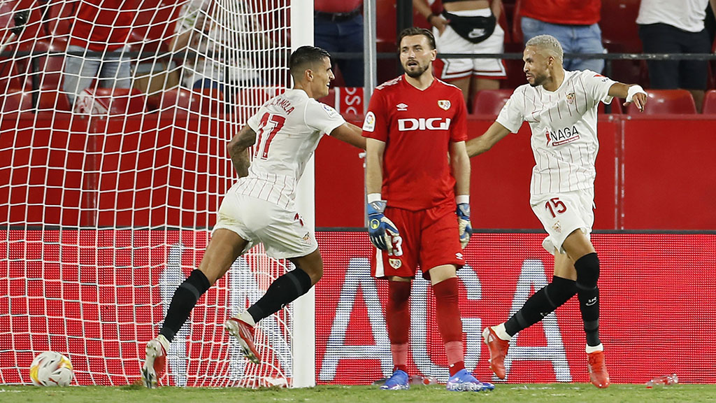 El Sevilla se llevó este domingo los tres primeros puntos de la temporada con un rotundo 3-0, con goles del delantero marroquí Youssef En-Nesyri, de penalti, y dos del centrocampista argentino Erik Lamela, en su debut soñado en el partido disputado este domingo en el Sánchez Pizjuán ante el Rayo Vallecano, que se quedó lastrado con la expulsión de su portero, el francés Luca Zidane, al cuarto de hora de juego.