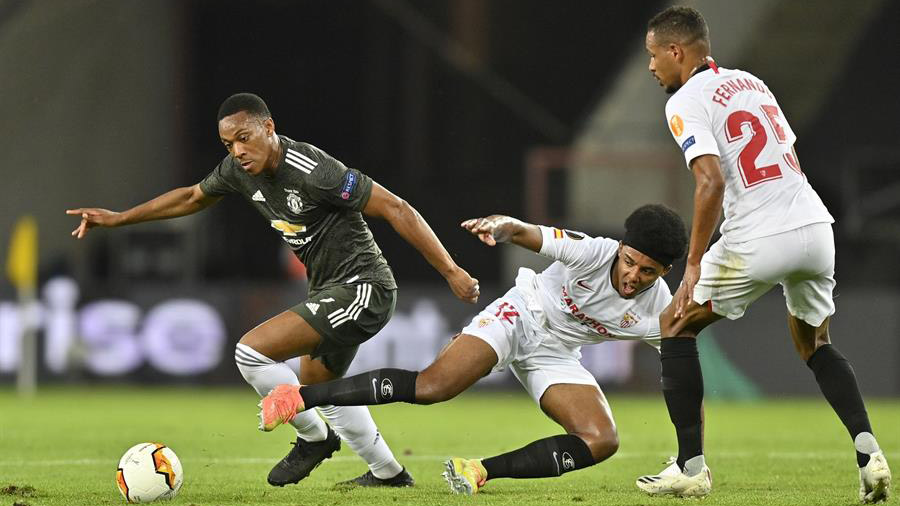 El Sevilla vivió la semifinal exigido al máximo, al límite en su esfuerzo para igualar la apuesta del United. En su presión y paso al frente, el equipo inglés impidió el dominio español y, en el intercambio de llegadas, parecía tener las de ganar el cuadro de Mánchester, que tardó poco en mostrar su estado de gracia.