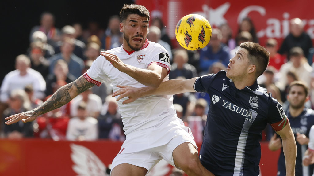 El Sevilla firmó una victoria de muchos quilates contra la Real Sociedad (3-2) que le sirve para distanciarse de la zona de descenso, a costa de un rival sin fútbol y en depresión que compromete su presencia en competiciones europeas la próxima temporada. La Real Sociedad salió al Sánchez-Pizjuán con la mente aún puesta en la eliminación copera ante el Mallorca o en la vuelta de la 'Champions' del martes ante el Paris Saint-Germain, tal vez, pero lo cierto es que sus futbolistas no tenían todos los sentidos en el duelo contra el Sevilla, que dominó a placer el primer cuarto de hora.