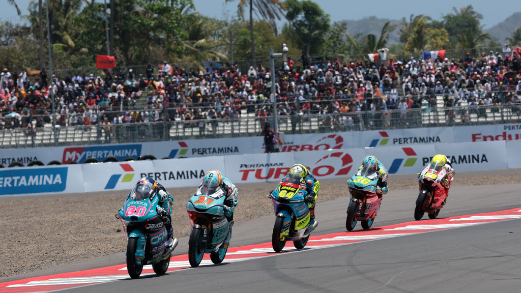 El colombiano David Alonso (CFMoto) sumó su novena victoria de la temporada, lo que le permitiría lograr matemáticamente el título de campeón del mundo dentro de siete días en Japón y se convertiría así en el primer colombiano campeón del mundo con apenas sumar tres puntos más en el circuito japonés 'Twin Ring Motegi' que su rival más directo, Daniel Holgado (Gas Gas) -sexto-, tras imponerse al fuerte calor y a los rivales de turno en Mandalika, en donde le acompañaron en el podio los españoles Adrián Fernández (Honda) y David Muñoz (KTM).