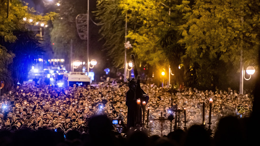 Durante todo el recorrido se han reproducido las imágenes de las calles de Sevilla llenas de personas para ver pasar al Cristo, que se ha realizado sin incidencias, después de que el pasado fin de semana la lluvia obligase a acortar el recorrido desde la Parroquia de La Candelaria a Santa Teresa.