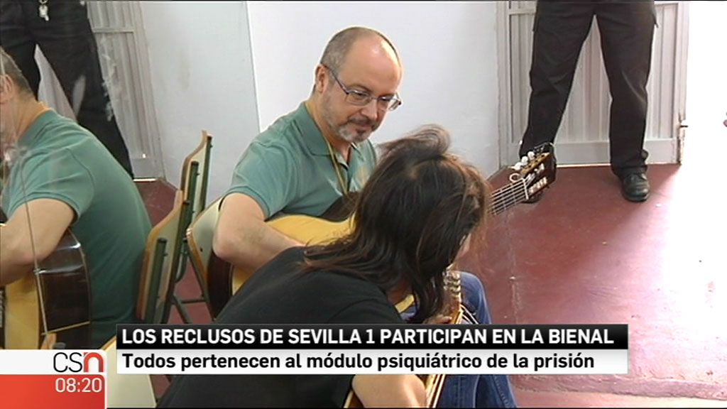 El flamenco sale de la cárcel para entrar en la Bienal de Sevilla de la mano de los internos del modulo psiquiátrico del centro penitenciario Sevilla 1. José Galán ha ayudado a estos reclusos que este miércoles actuarán en el Teatro Alameda, convertido para esta Bienal en café teatro. Se trata de 12 alumnos que han participado durante nueve meses en un taller de flamenco impartido en la misma cárcel. En el espectáculo se enseñó a más de 50 bailaores y cantaores, que han puesto un gran interés y todo su corazón..