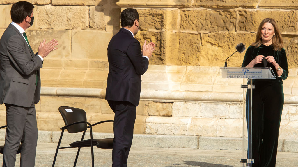 Los actos institucionales del 28F estuvieron marcados por dos momentos destacados; el pasaje de la alocución del presidente Juanma Moreno en el que su voz se entrecorta de emoción y el discurso sincero y al corazón de la doctora Carmen Navarro en representación de los sanitarios andaluces.