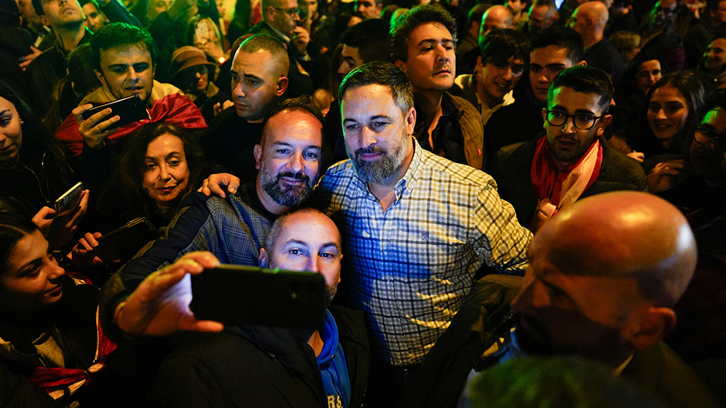 El líder de Vox, Santiago Abascal, que abandonó el pleno del Congreso junto al resto de su grupo en cuanto concluyó su intervención, se acercó a la concentración, en la que fue recibido al grito de "Presidente, presidente".