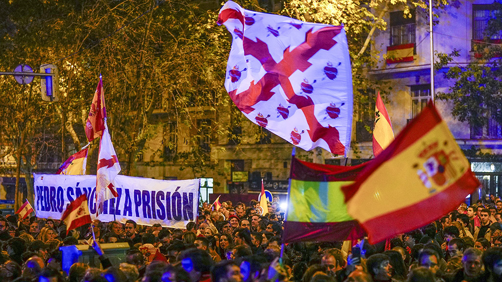 La concentración, en la que participaron unas 2.000 personas según la Delegación del Gobierno, transcurrió de forma tensa casi desde el principio y en medio de un dispositivo de seguridad mayor que el de jornadas precedentes coincidiendo con la celebración del pleno de investidura de Pedro Sánchez.