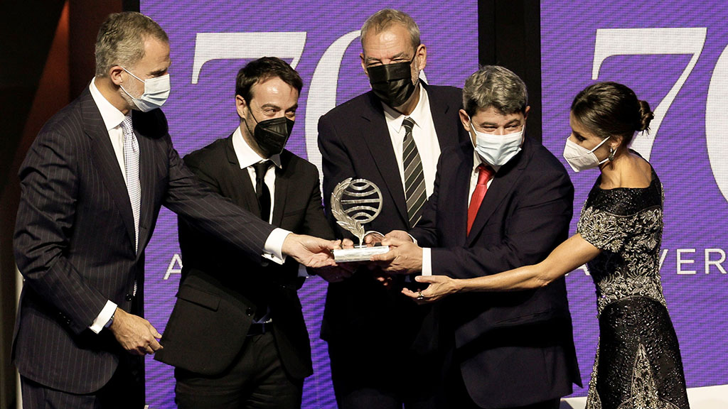 La autora Carmen Mola, seudónimo bajo el que se escondían los guionistas Jorge Díaz, Agustín Martínez y Antonio Mercero, ha ganado el Premio Planeta 2021 con 'La Bestia', el primero con la dotación de un millón de euros, y que se ha entregado en una cena literaria en el Museu Nacional d'Art de Catalunya (MNAC) presidida por los Reyes.