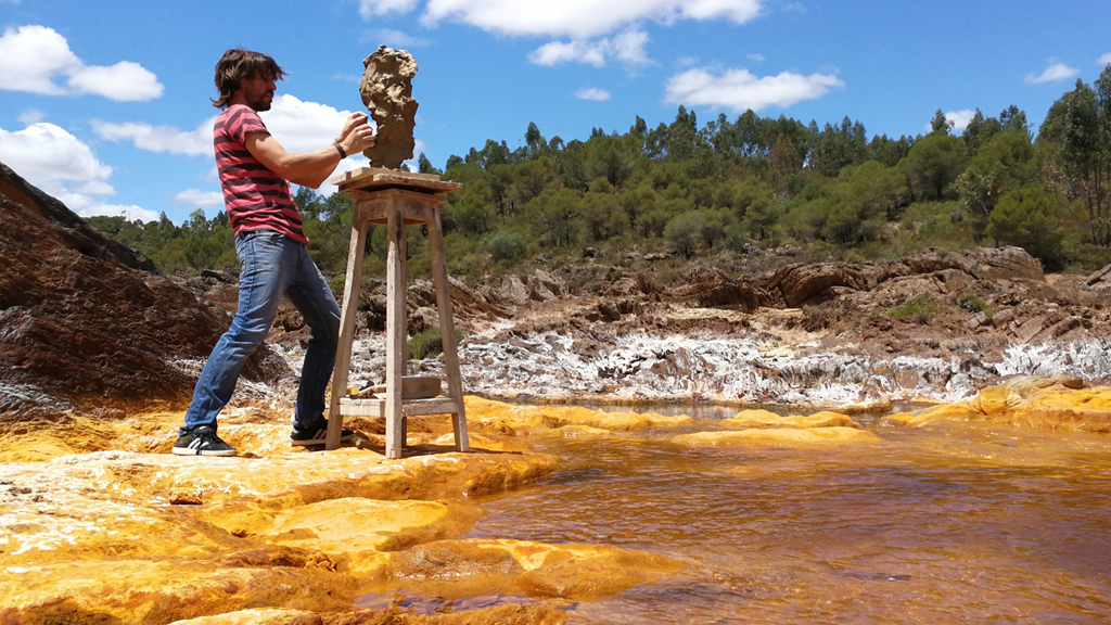 Y ese camino de búsqueda le ha llevado, entre otro sitios, a Río Tinto y allí entre rocas y aguas, entre naranjas y ocres ha modelado una de sus últimas obras, por ahora.