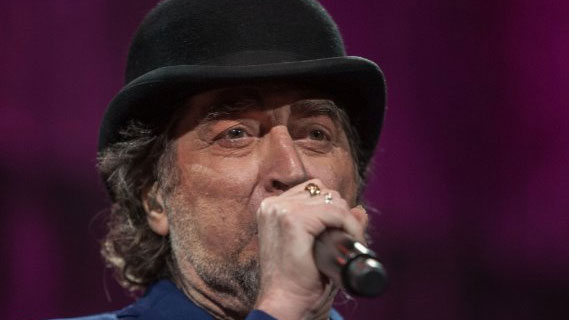 Ha salido al escenario con su sempiterno bombín en la cabeza, y sin dirigirse al público. Tan solo quitándose el sombrero y reverenciándose ante sus entusiastas parroquianos, que no han parado de ovacionar al cantautor.