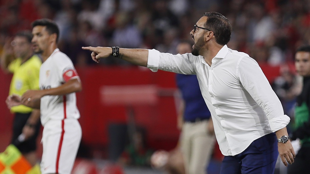 El del Sevilla, Pablo Machín, sacó de entrada a tres futbolistas que no fueron titulares ante el Betis, el central francés Joris Gnagnon, el extremo Manuel Agudo 'Nolito' y el lateral Aleix Vidal, este por la izquierda, cambiado de banda.