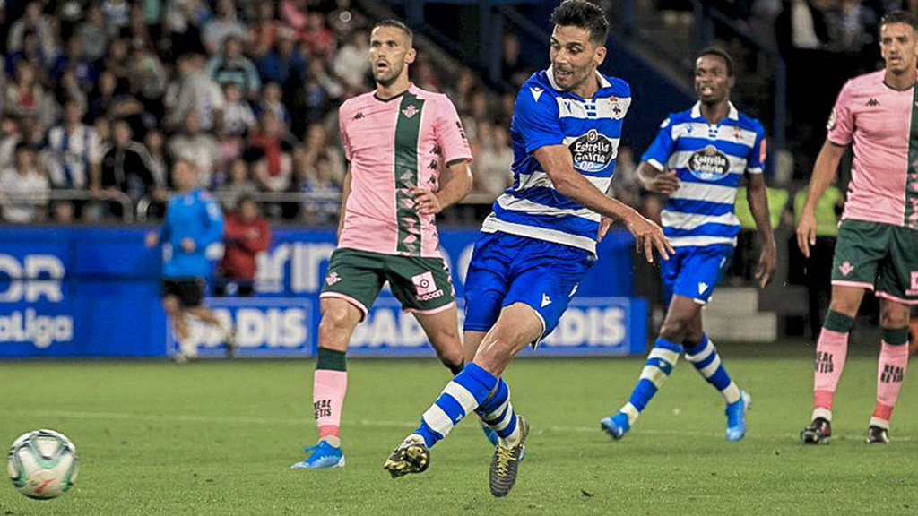 Los andaluces tuvieron que replegarse para contener al Deportivo y fueron incapaces de entrar en juego en el primer cuarto de hora. Fekir, con libertad para moverse entre el centro del campo y el ataque, Canales y Lainez apenas entraron en juego y Loren fue una isla.