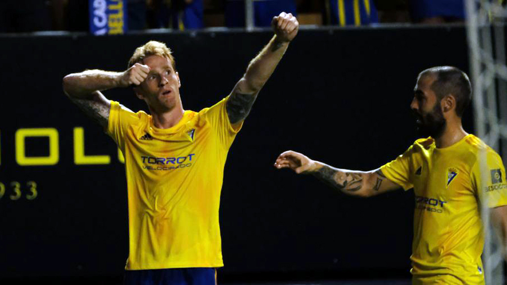 Cuatro minutos después, inauguró el marcador el Cádiz en un cabezazo de Álex Fernández tras un centro de Isaac Carcelén.