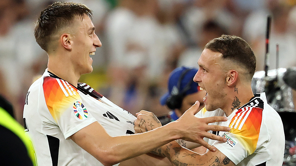 La selección de fútbol de Alemania se ha clasificado este sábado para los cuartos de final de la Eurocopa masculina, que se está celebrando en su país, gracias a una victoria por 2-0 frente a Dinamarca, merced a un partido jugado en el Signal Iduna Park y resuelto con un penalti, convertido por Kai Havertz, y un gol de Jamal Musiala tras el descanso.