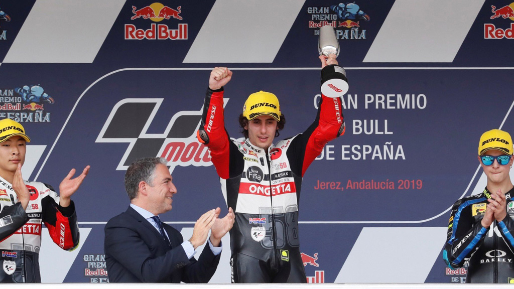 El italiano Niccolo Antonelli (Honda) ganó la batalla por la victoria en el Gran Premio de España de Moto3 que se disputó en el circuito "Ángel Nieto" de Jerez de la Frontera en una dura pelea con su propio compañero de equipo Tatsuki Suzuki y el italiano Celestino Vietti (KTM).