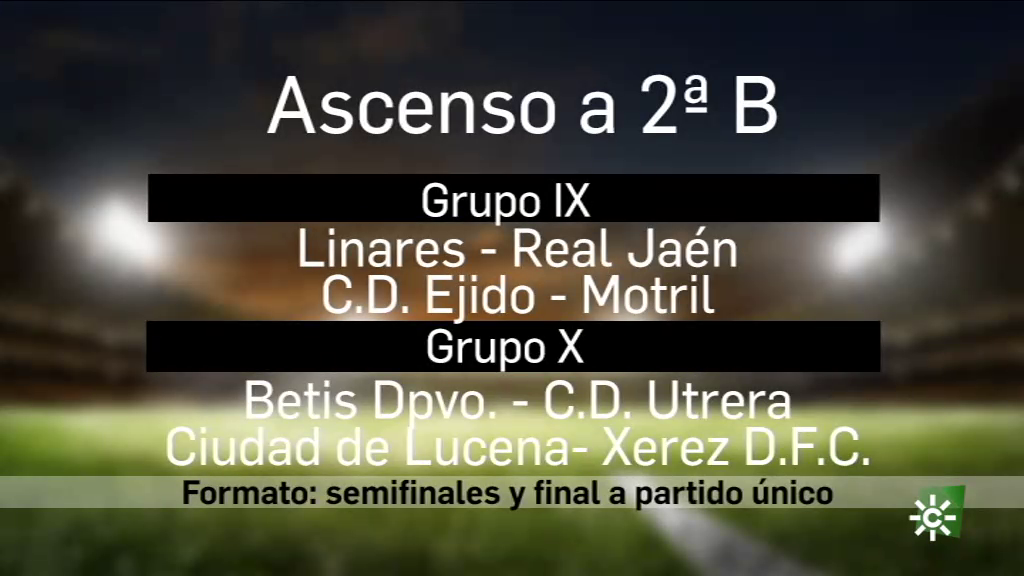 En Tercera, se dicen los cuatro primeros: Linares-Jaén, Poli Ejido- Motril (Grupo IX), Betis-Utrera y Lucena-Xerez (Grupo X)